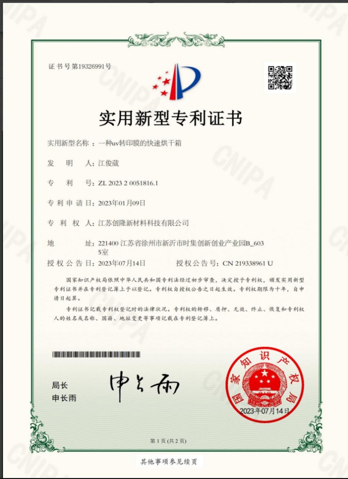 ООО «Цзянсу Чуанлун Новые Материалы и Технологии» является предприятием, специализирующимся на исследованиях, разработках и производстве специальной бумаги, функциональных плёнок и материалов для фольги горячего тиснения. Основная продукция включает специальную базовую бумагу для обёртки сигаретных фильтров, материалы для фольги горячего тиснения, а также различные виды функциональных плёнок. Продукция применяется в упаковке алкогольных напитков, пищевых продуктов, товаров повседневного спроса, а также в табачной промышленности. Широкий ассортимент позволяет удовлетворять разнообразные рыночные потребности. Компания осуществляет прямые и агентские импортно-экспортные операции с товарами и технологиями.